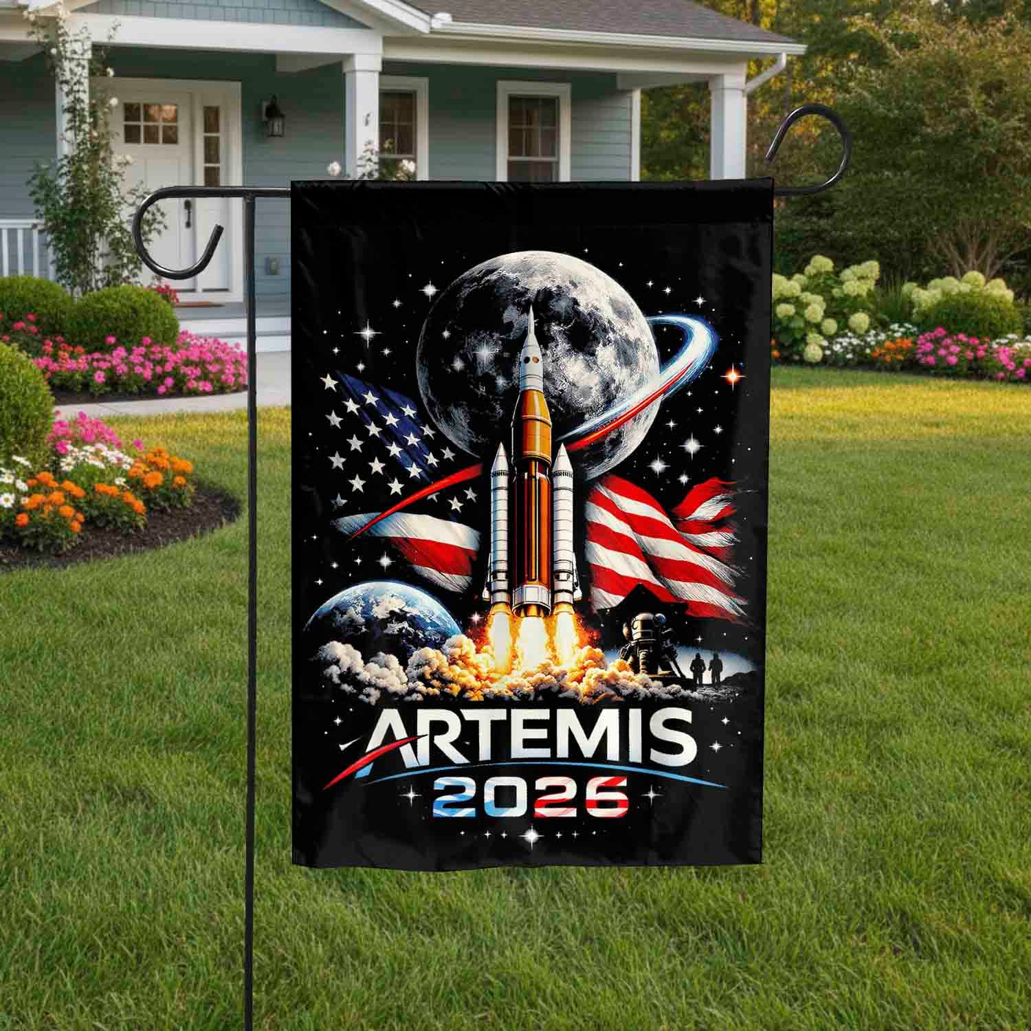 Artemis 2026 American Rocket Launch To The Moon Landing House Flag